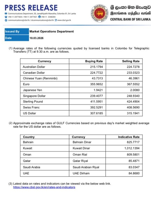 இலங்கை மத்திய இன்று வெளியிட்டுள்ள நாணயமாற்றுவீத அறிக்கையில் இந்த விடயம் தெரிவிக்கப்பட்டுள்ளது.